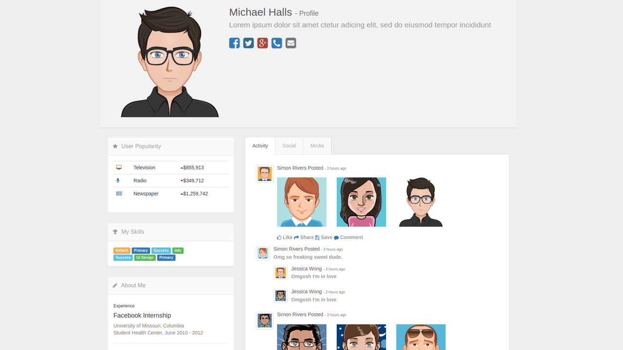 BOOTSTRAP 4 SOCIAL PROFILE