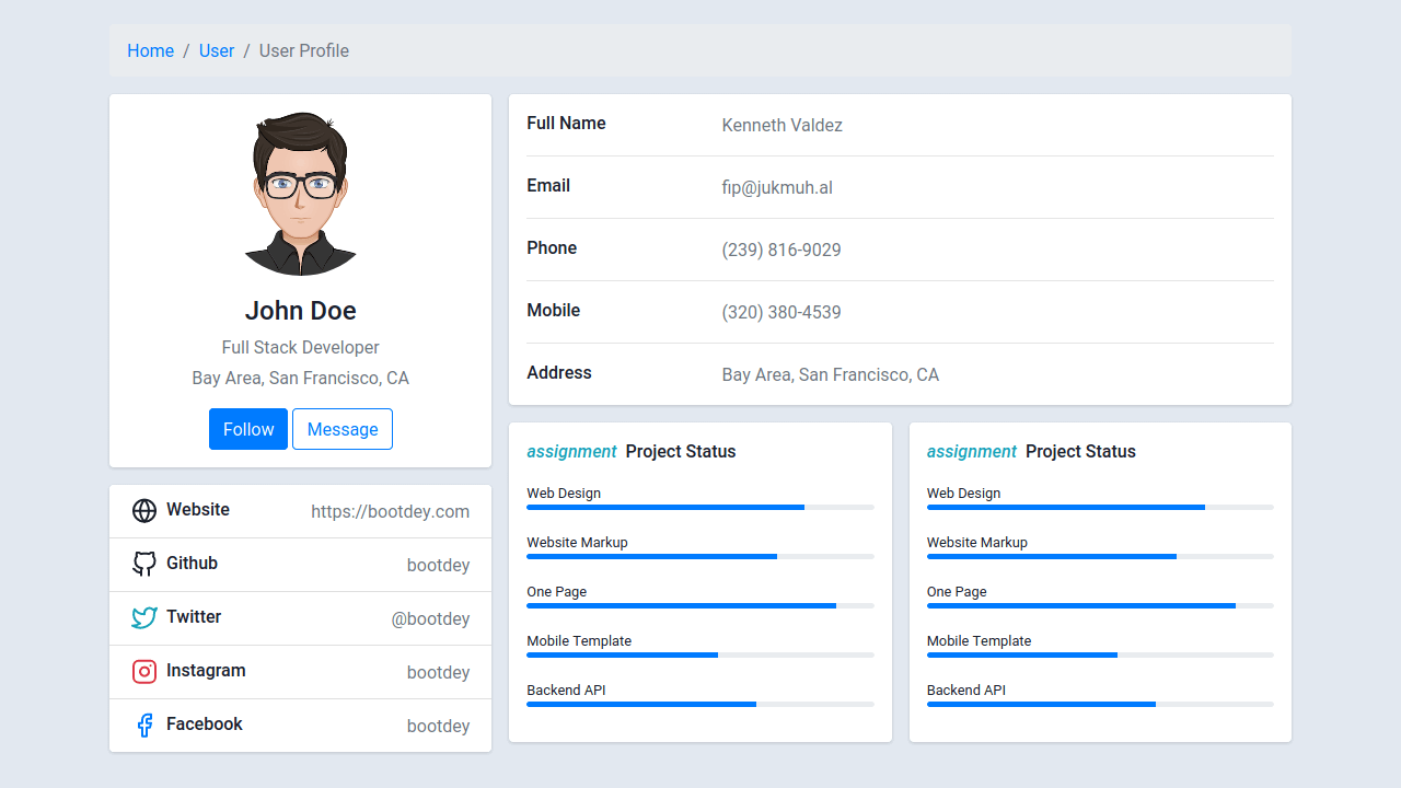 Hear the Collection of free Bootstrap user profile code examples.